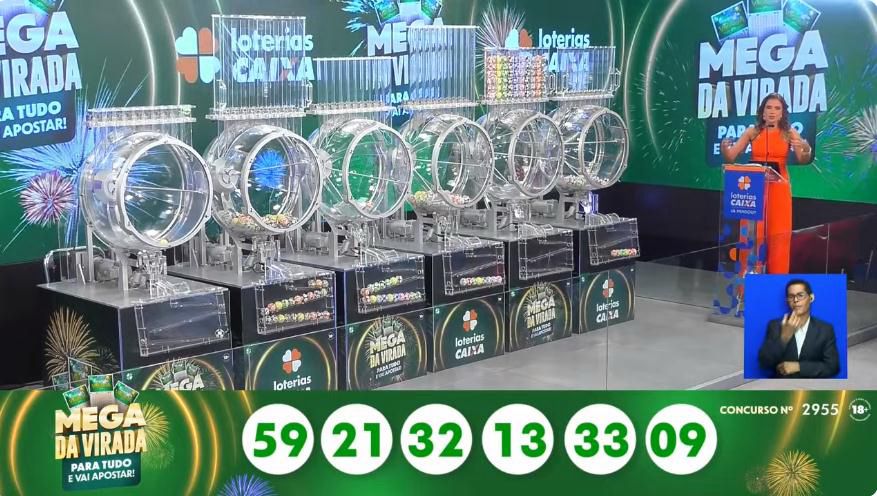 A Mega da Virada vai pagar o prêmio recorde de R$ 1,09 bilhão. As dezenas sorteadas foram 59, 21, 32, 13, 33 e 09.