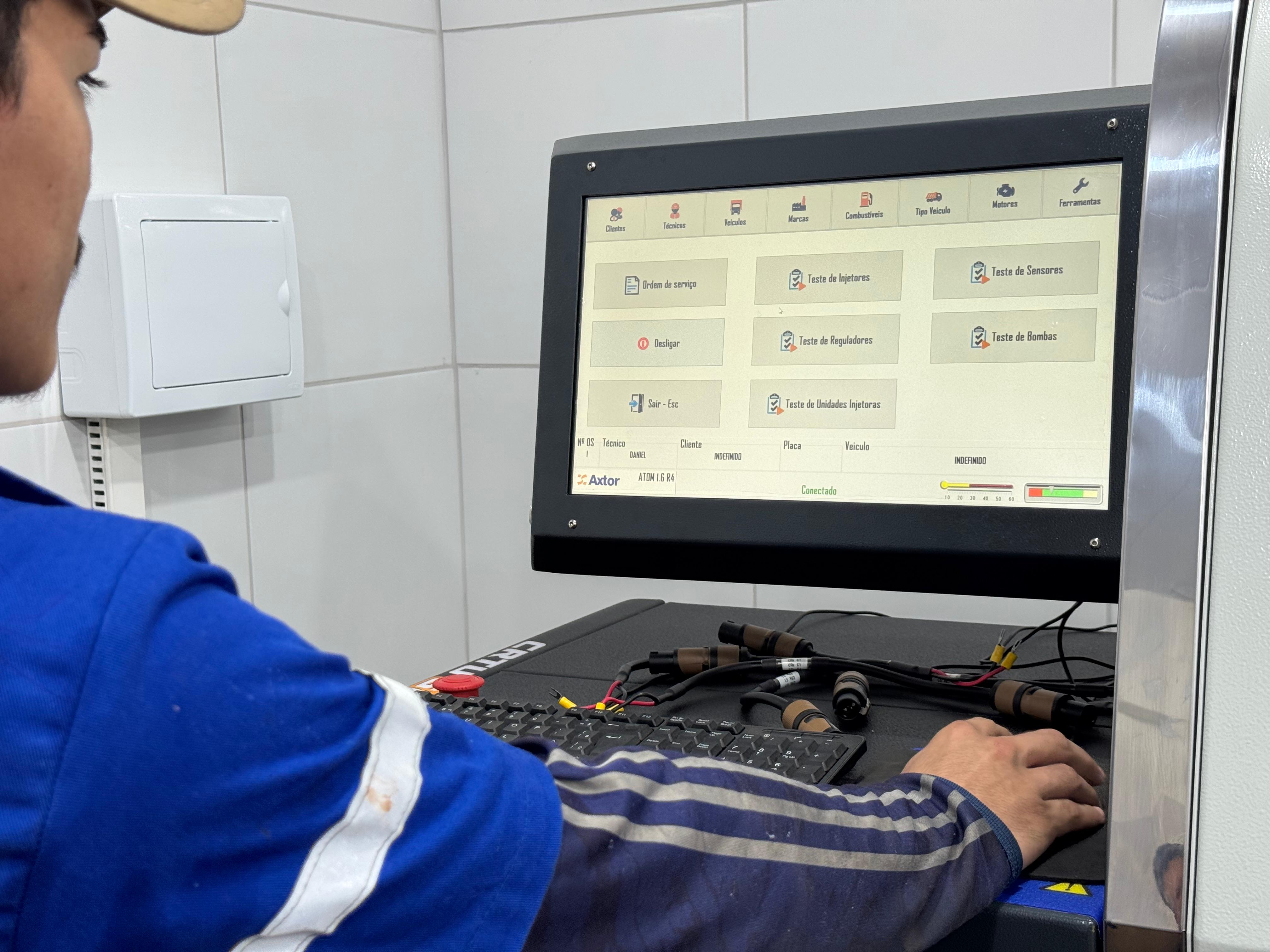 Ela é uma máquina de alta precisão que testa, calibra e regula cada unidade injetora, garantindo que o motor dos nossos veículos opere com máximo desempenho e eficiência no consumo de combustível. É um investimento que melhora o desempenho da frota e traz economia para a empresa" Disse o Colaborador.
