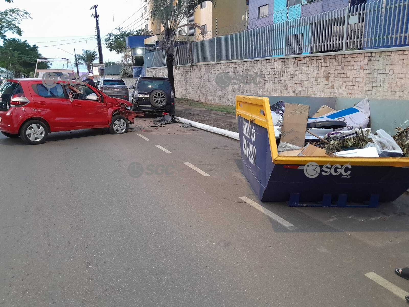 Um acidente de trânsito registrado na manhã desta terça-feira (22) causou transtornos na Avenida Rio Madeira, no bairro Agenor de Carvalho, em Porto Velho (RO). Por volta das 5h30, o motorista de um carro modelo Fiat Mobi vermelho perdeu o controle da direção e colidiu contra uma lixeira de entulhos e também contra uma Mitsubishi Pajero que estava estacionada.