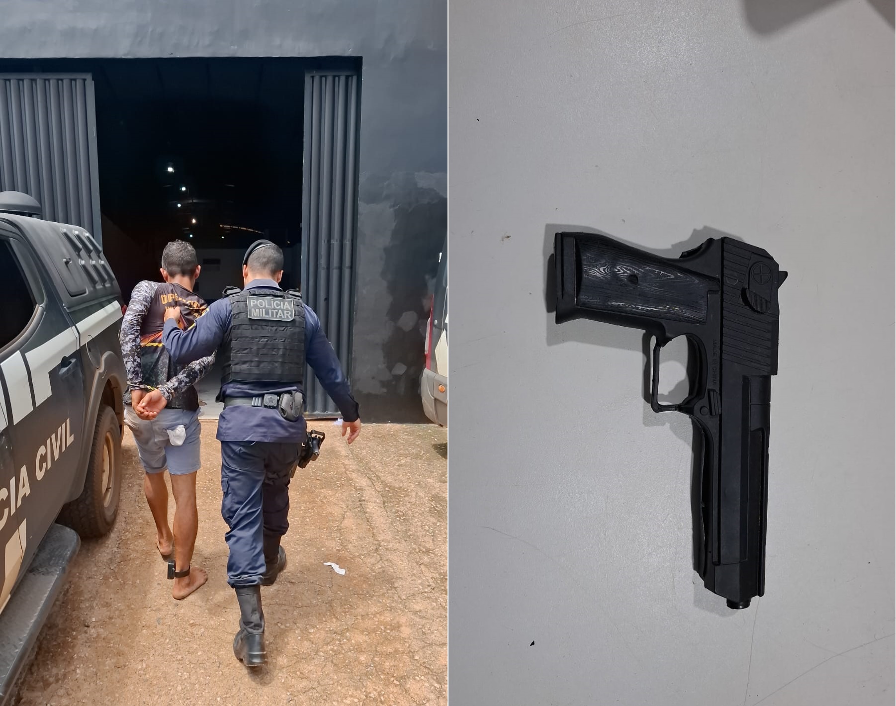Ainda de acordo com a vítima, o suspeito teria invadido a residência sem autorização, feito ameaças alegando estar armado, tomado o celular da mulher e exigido a senha, além de desferir socos na região da cabeça e tentar beijá-la à força. O objeto utilizado na ameaça foi posteriormente identificado como um simulacro de arma de fogo.