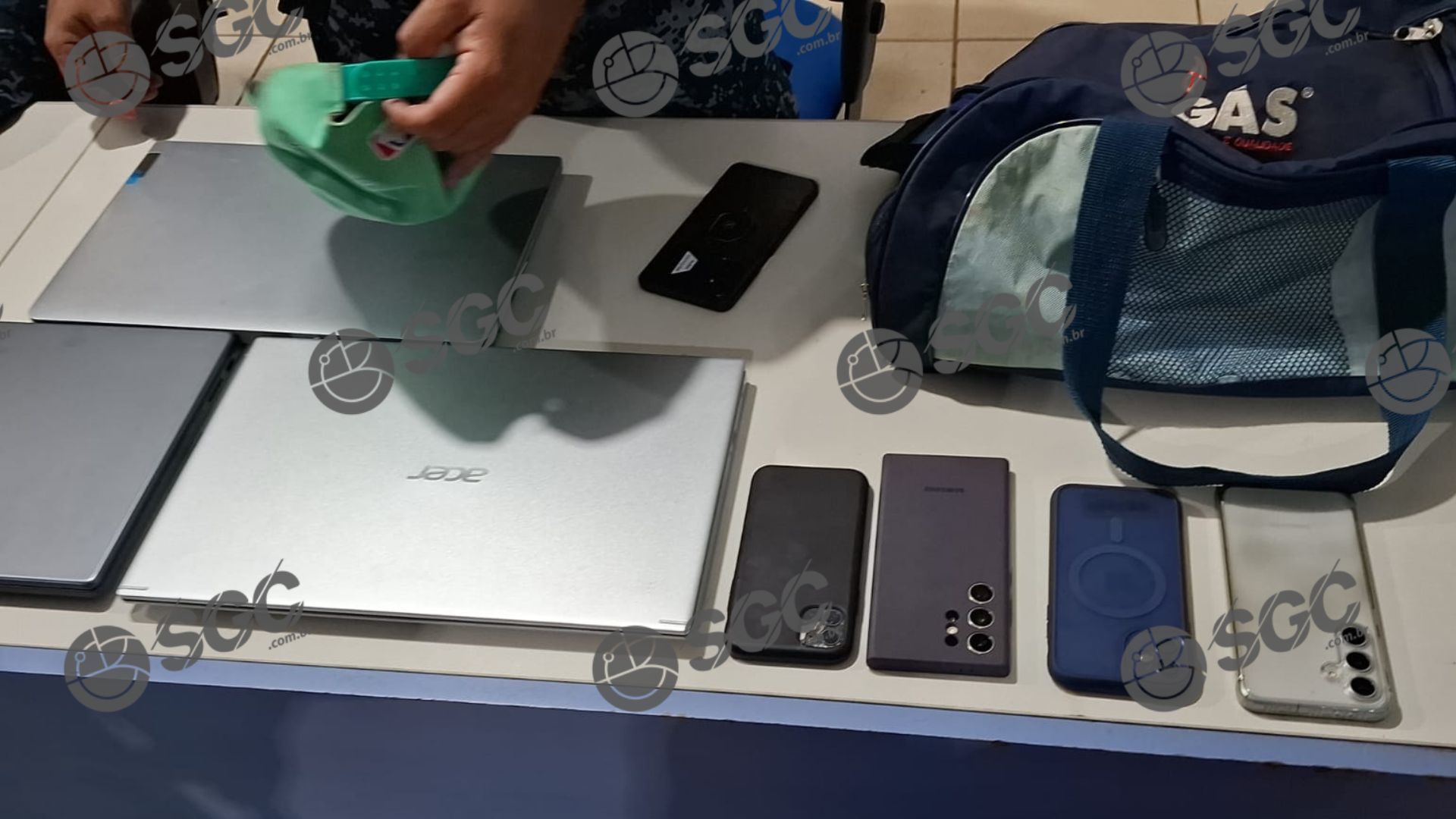 Segundo informações apuradas pelo Portal SGC, os assaltantes levaram diversos itens, incluindo celulares, relógios, notebooks e mais de R$ 100 mil em dinheiro. Durante a ação, um policial do Batalhão de Operações Policiais Especiais (Bope), que estava à paisana, conseguiu capturar um suspeito de 34 anos.
