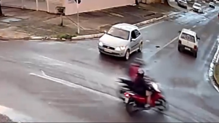 Conforme imagens de monitoramento de um estabelecimento próximo do local, a motociclista estava em velocidade compatível com a região, mas, no momento de fazer a conversão para adentrar à esquerda, não percebeu que outra moto seguia reto, não tendo o condutor tempo para evitar a colisão lateral. O impacto fez com que os dois envolvidos caíssem ao solo resultando em várias escoriações em ambos.