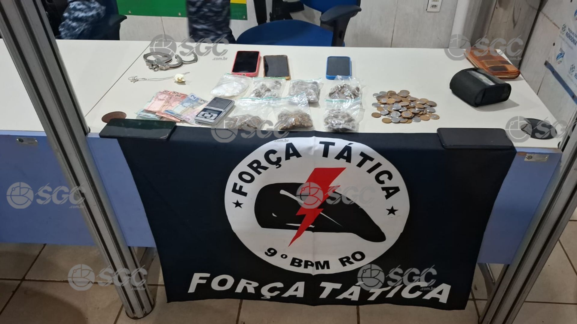 De acordo com informações apuradas pelo Portal SGC, a ação foi motivada por denúncias que indicavam a presença de um ponto de venda de entorpecentes. Durante a abordagem, a equipe policial encontrou no local substâncias como maconha e cocaína, além de quantias em dinheiro, tanto em cédulas quanto em moedas, típicas de transações ilícitas.