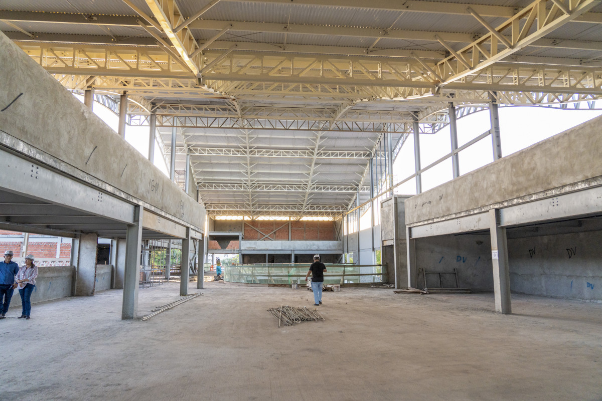 A cobertura do prédio já está totalmente coberta, restando apenas as àreas de embarque e desembarque. Estão em andamento as redes hidráulica e elétrica, pintura com acabamentos e a preparação para o forro. "Depois nós vamos entrar com o acabamento, com piso de granito que nós estamos pedindo, e com forro, porque tem vários tipos, principalmente com o forro ecológico.