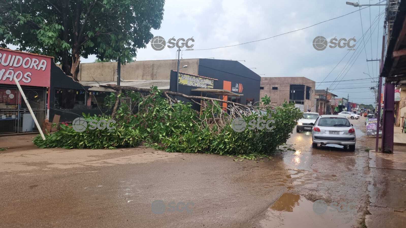Um forte temporal registrado na tarde desta segunda-feira (22) provocou a queda de uma árvore na Rua União, próximo ao cruzamento com a Avenida Mário Andreazza, na zona Leste da capital.
