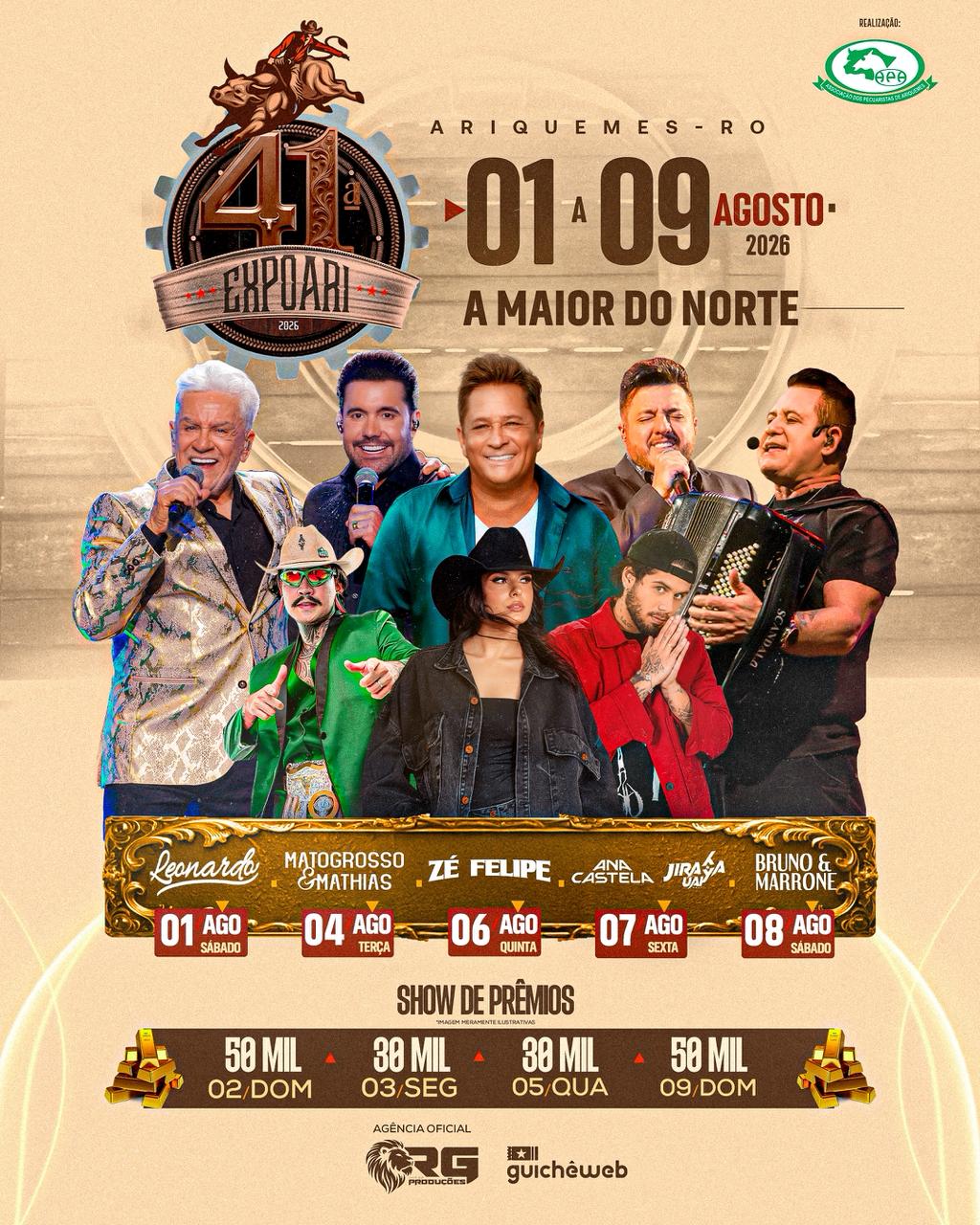 "A Expoari tem se tornado uma das principais vitrines de Rondônia. Para 2026 estamos preparando uma festa que valoriza o agronegócio, fortalece a economia e oferece lazer para toda a família.", afirmou.