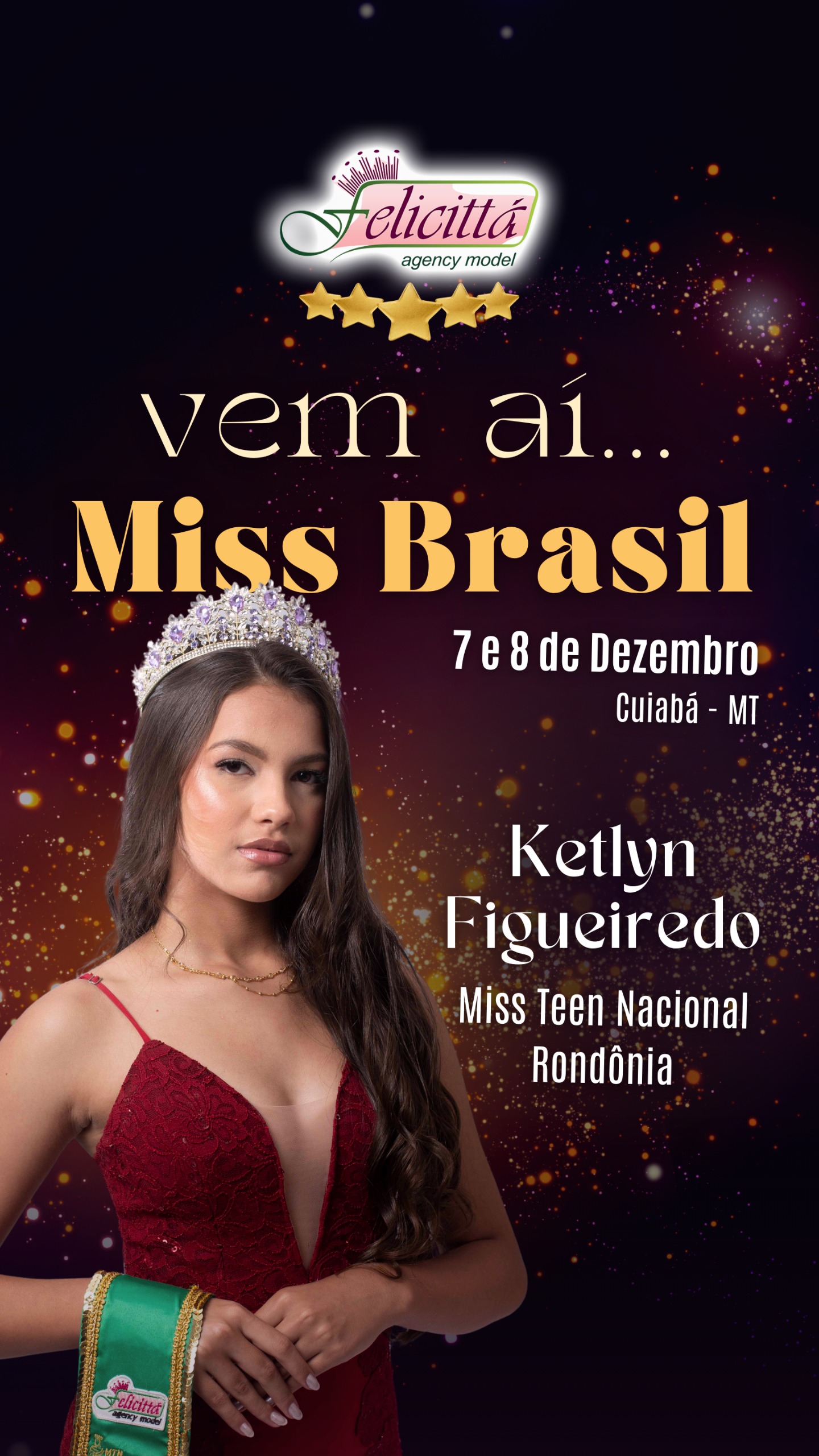 A jovem Ketlyn Figueiredo, de 15 anos, representará Rondônia no Miss Teen Nacional Brasil 2025. O concurso nacional está marcado para os dias 7 e 8 de dezembro, em Cuiabá (MT). Ketlyn carrega o título de Miss Teen Nacional Rondônia 2025.
